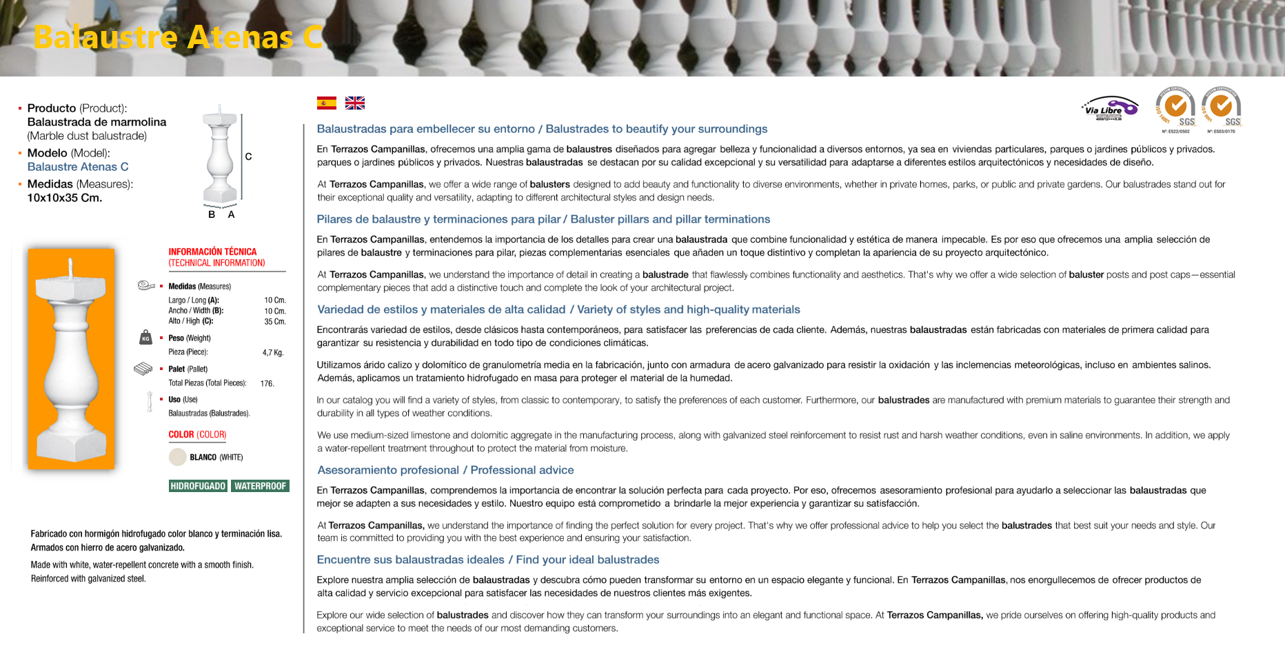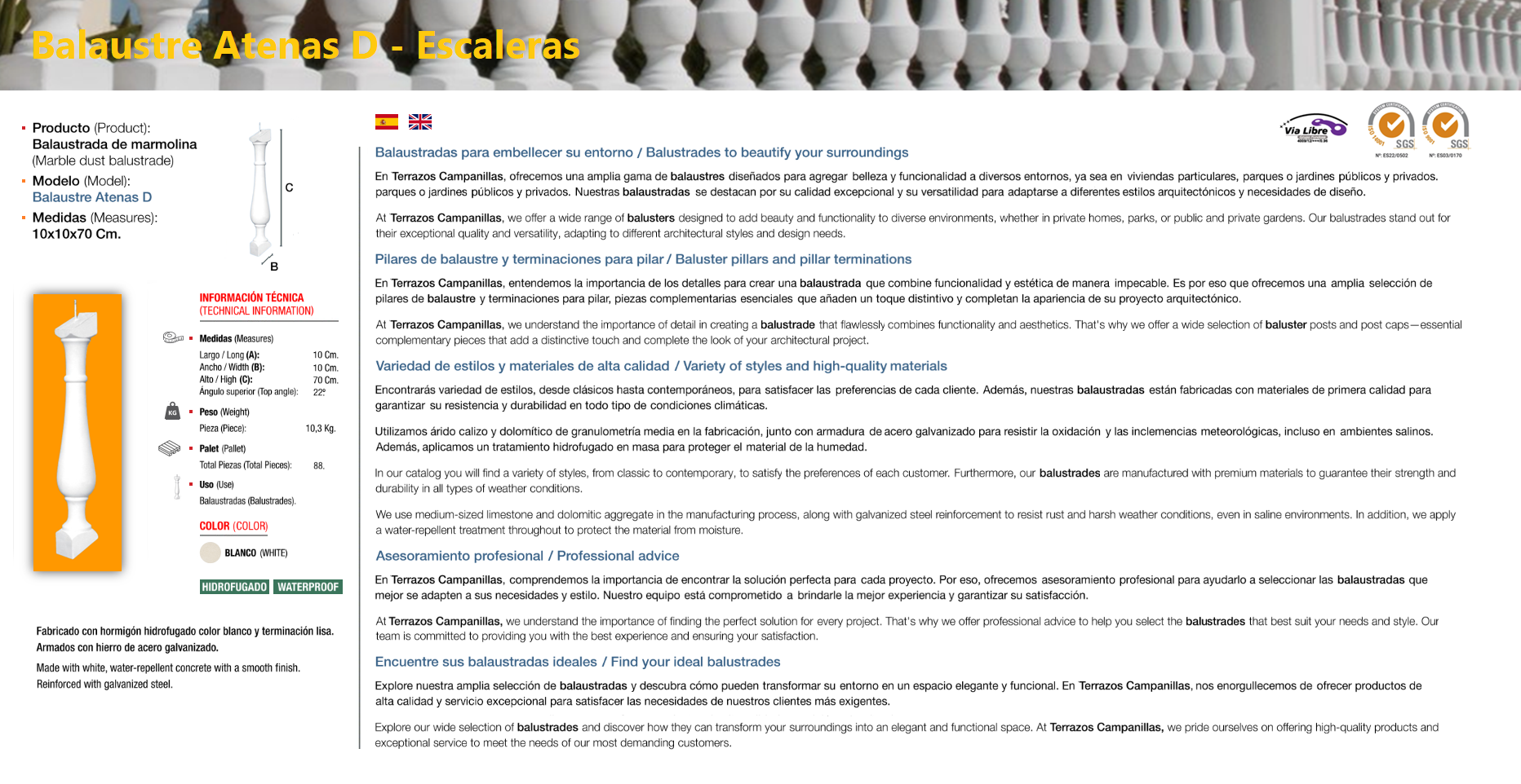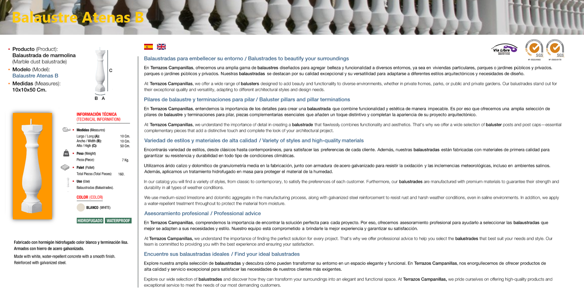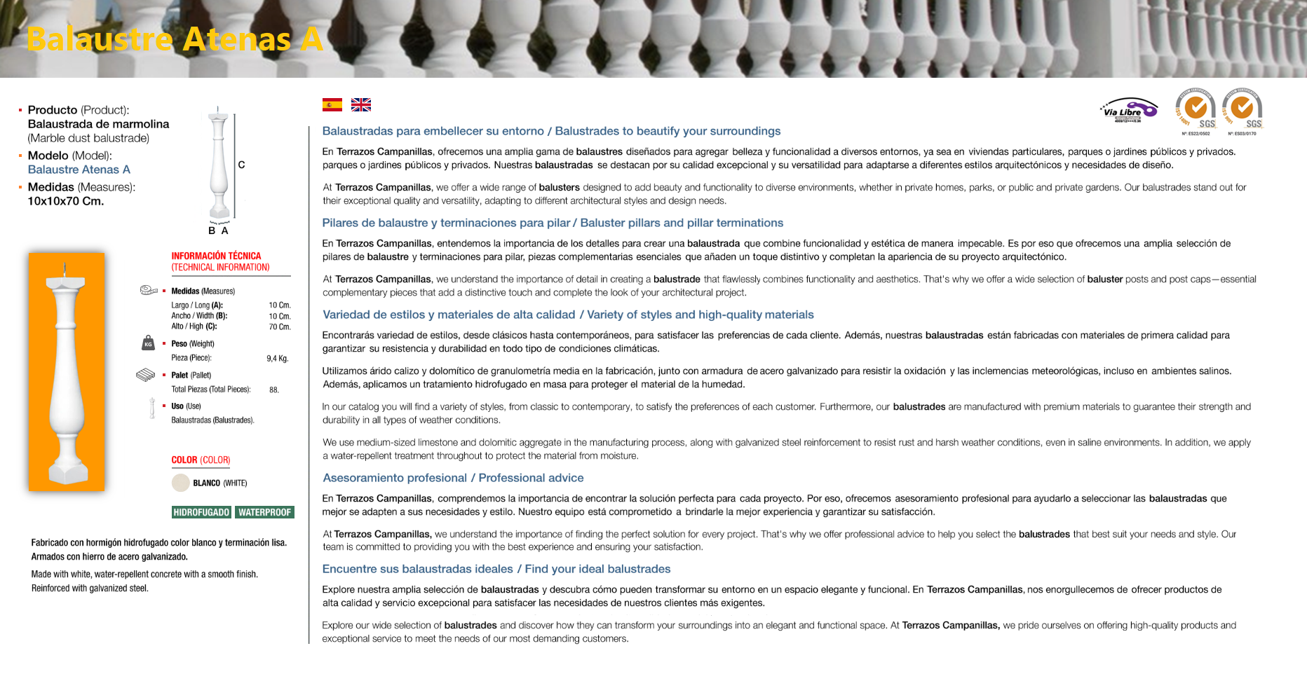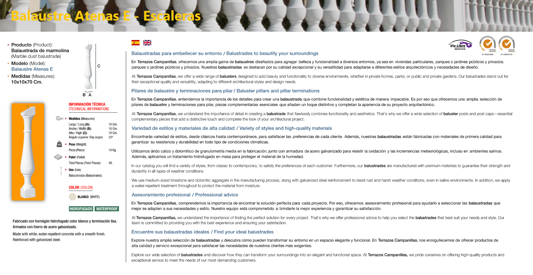 Balustrade a balustrade or balaústre (from the Greek balaustion; Latin balaustium, “flower of pomegranate”) is a moulded shape in natural stone or artificial stone, which supports a parapet of balconies and terraces, or stair banisters. The set of balusters is called balustrade. The artificial stone, also called stone mortar, cultivated stone, or rebuilt stone, is an alternative to natural stone, practically it is a special type of mortar of texture and color that perfectly imitates natural stone. Composed of washed sand, silica, different colours of marmoline, cement, water (for setting) and special additives (plasticizers, fluidifiers etc.) to improve the aesthetic qualities and resistance.
